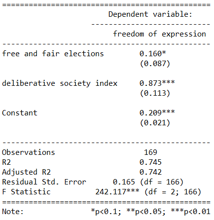 summary(free_express_model <- lm(freedom_expression ~ free_elections + deliberative_index, data = data_1990))
