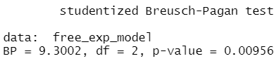 Let’s run a Breush-Pagan test (from the lmtest package) to check our suspicion of heteroskedasticity.