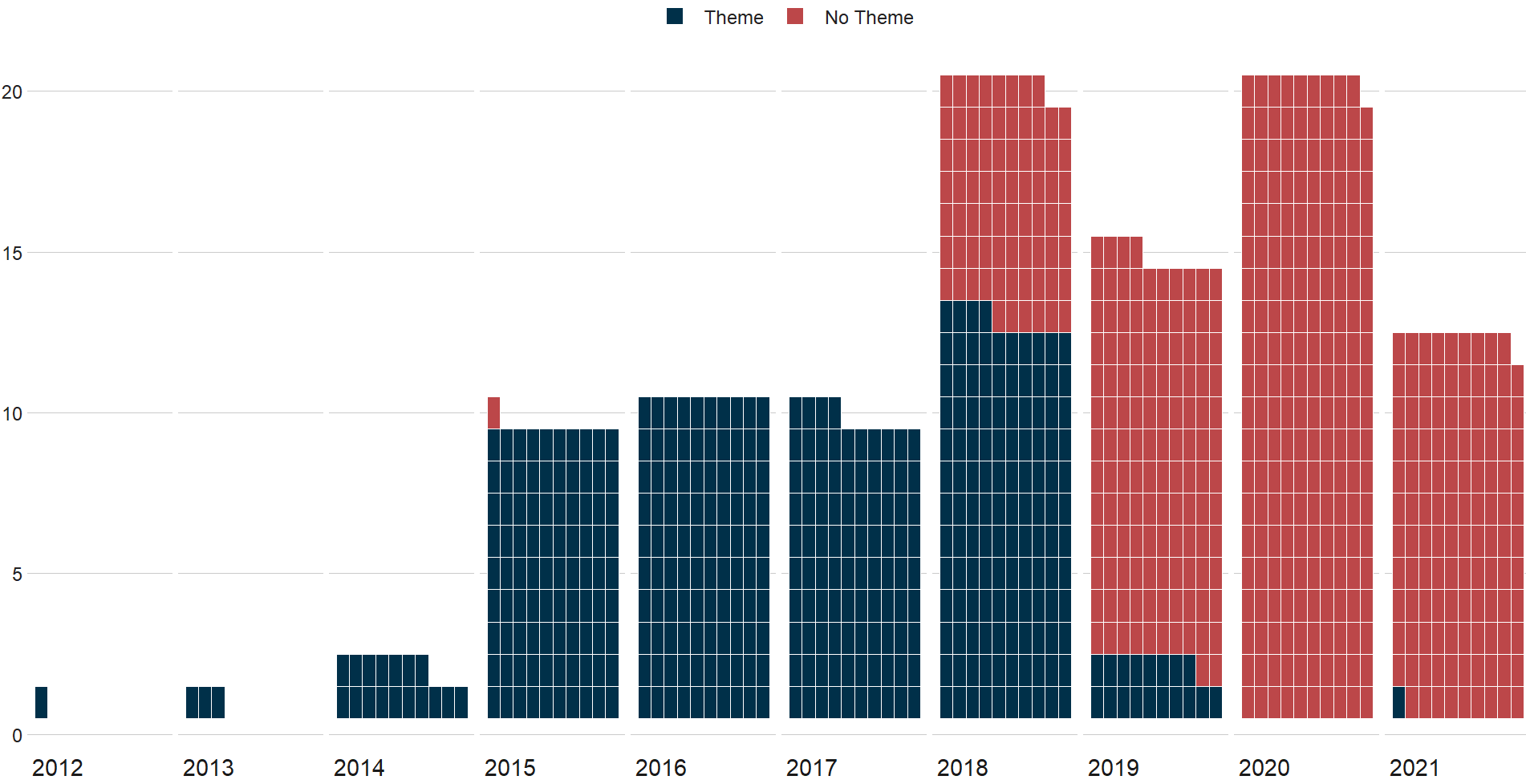 Packages we will need: In this blog, we will look at visualising proportions in a few lines. I have some aid data and I want to see what proportion of the aid does not have a theme category. This can be useful to visualise incomplete data across years or across categories. First, we can make … Continue reading How to graph proportions with the waffle and treemapify packages in R