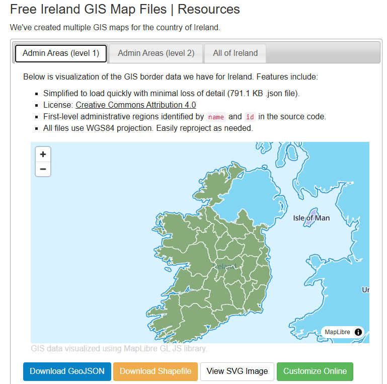 "ie.json" will be our GeoJSON file containing Ireland’s geographic data. That will be the 26 counties.