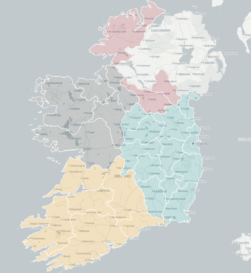 We can add data for the four provinces of Ireland