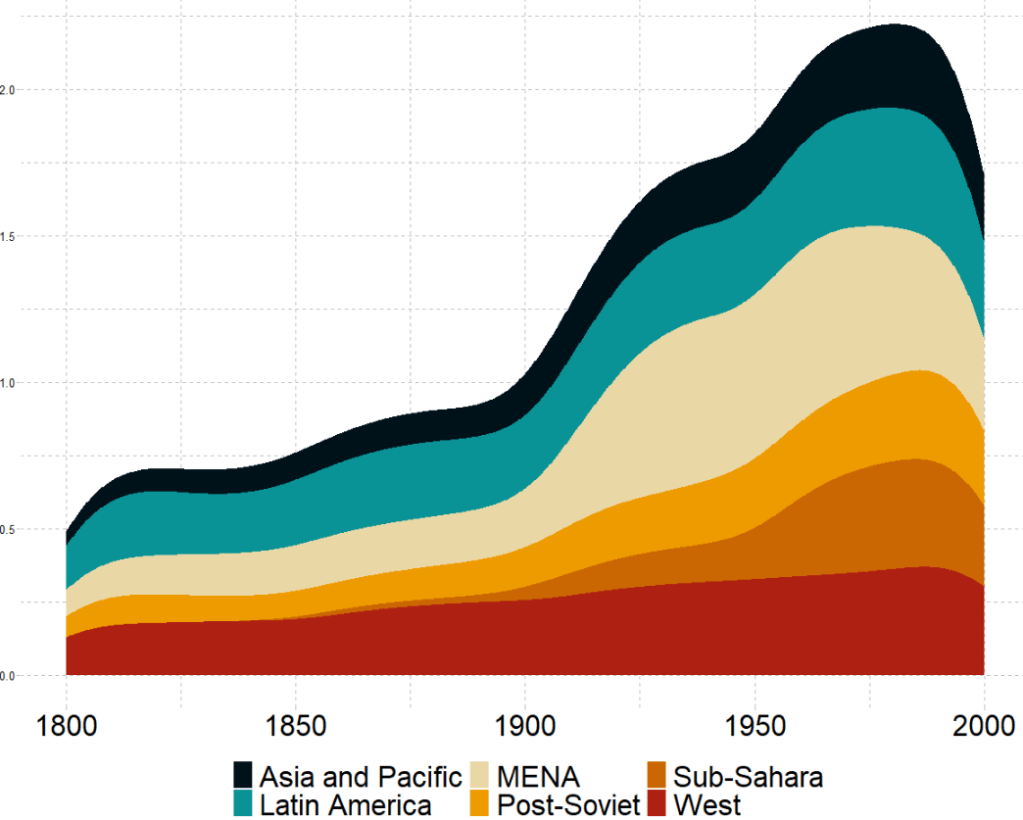 facet_wrap(~decade, nrow = 1, strip.position = "bottom") +