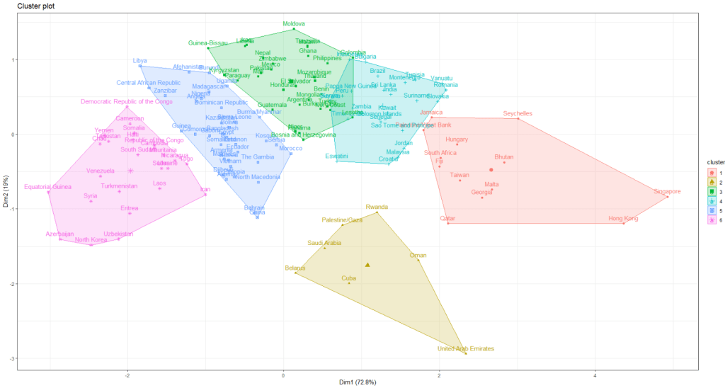 So it could be interesting to further examine why these countries from opposite ends of the democracy spectrum have similar pattern of low globalization. It puts a spanner in the proverbial works with my working theory that countries higher in democracy are more likely to be more globalized! What is special about these two high democracy countries that gives them such low scores on globalization.
