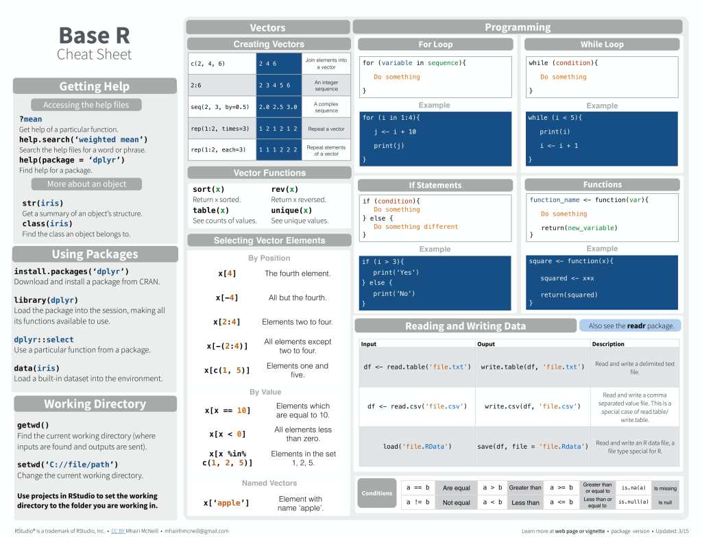 Cheat Sheets in R Click to download Base R Page 1Download Click to download Base R Page 2Download Click to download Time Series Cheat SheetDownload Click to download Purr function cheatsheetDownload Click to download forcats cheatsheetDownload Click to download lubridate cheatsheet Page 1Download Click to download lubridate cheatsheet Page 2Download Click here to download stringr cheatsheets Page 1Download Click here to download stringr cheatsheet Page 2Download Click here to download data transformation cheatsheet Page 1Download Click here to download data transformation cheatsheet Page 2Download Share this: Click to share on X (Opens in new window) X Click to share on Facebook (Opens in new window) Facebook Like Loading...